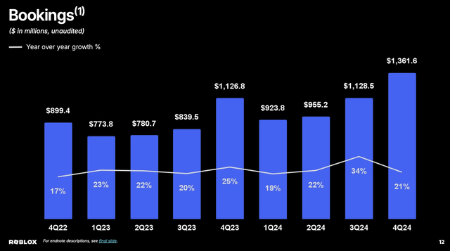 该公司能否实现其颇具挑战性的目标?Roblox 预计第一季度收入同比增长 24-27%,预订量同比增长 22-24%。